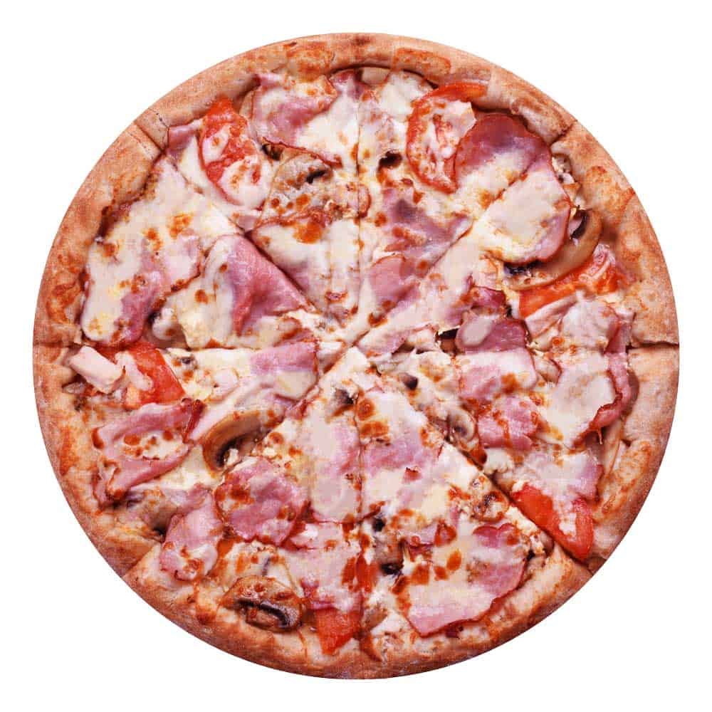 Свиная нарезка, копченый цыпленок, грибы шампиньоны, томаты, фирменный соус «Релиш», сыр «Моцарелла».